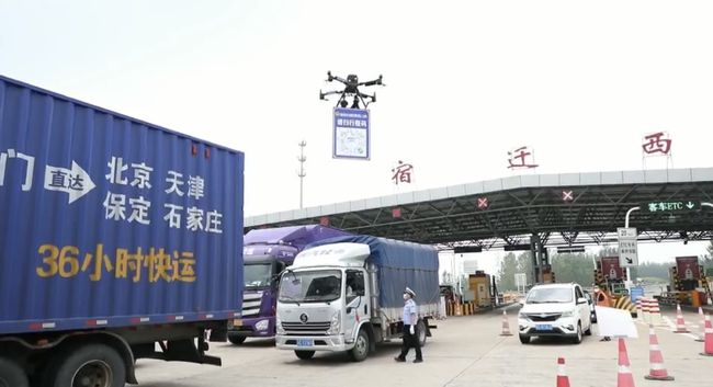 近日,江苏多地在省道和高速公路出入口设立了防控查验点,对过往车辆驾驶员的行程码、健康码进行查验。而在宿迁国省道、高速出入口等防控查验点,除了有专人在开展疫情防控检查工作,还有一辆无人机穿梭在每辆过路车前方,无人机下方“叼”着一个二维码,边飞边喊话,邀请过往车辆“快点扫我”,既萌态十足,又大大提高了查验效率。