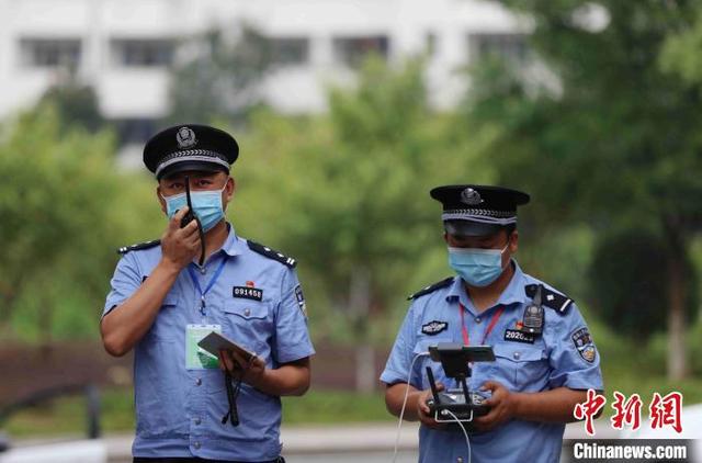 民警操纵无人机进行人群监测。 吴勇兵 摄