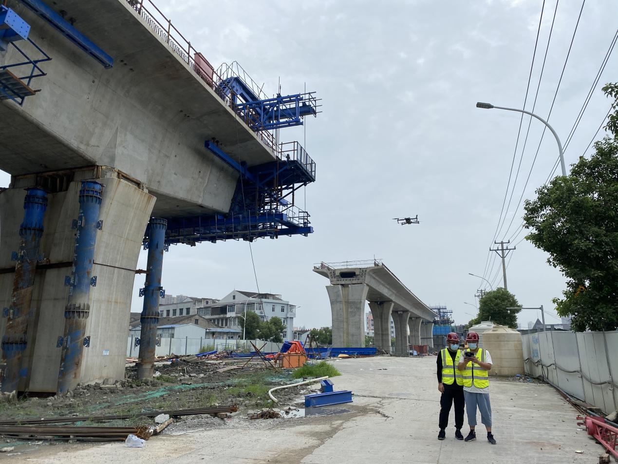 今年8月,市铁投集团连同安全风险咨询单位针对S2线共同推出了无人机高空巡检协助安全管理的新模式,相比传统人工巡检方式,无人机巡检具有全覆盖、全视角等特点,特别在现浇梁、车站主体、挂篮、临边防护、文明施工等作业环节,巡检效率得到显著提升。