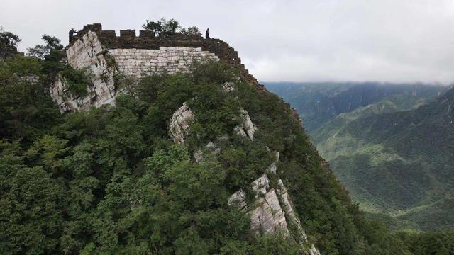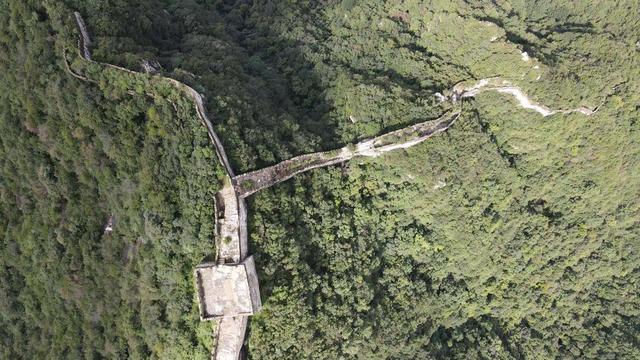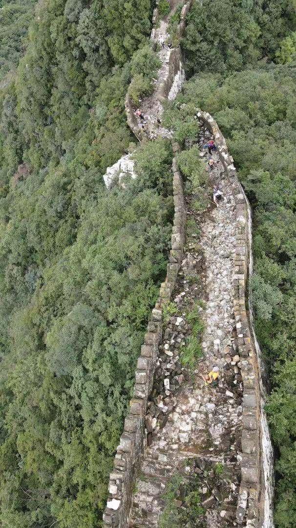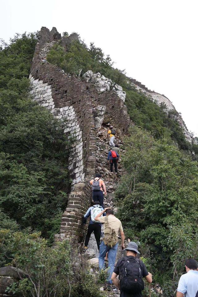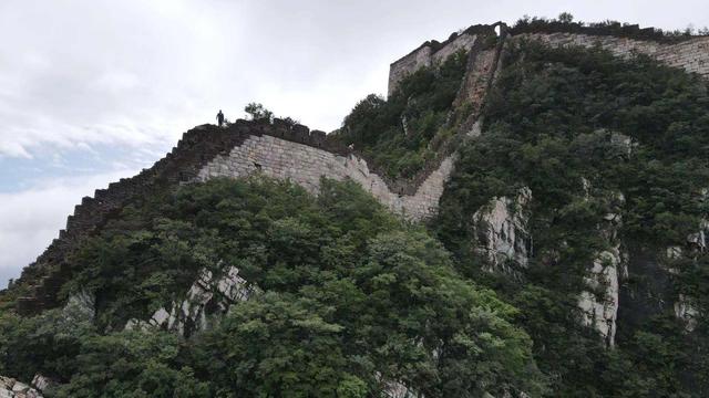由于风吹日晒水冲,这段长城面砖已经损毁殆尽,长城上长满灌木。哪怕是经验丰富的长城专职保护员,也只能从下往上爬,从上往下爬几乎不可能。
