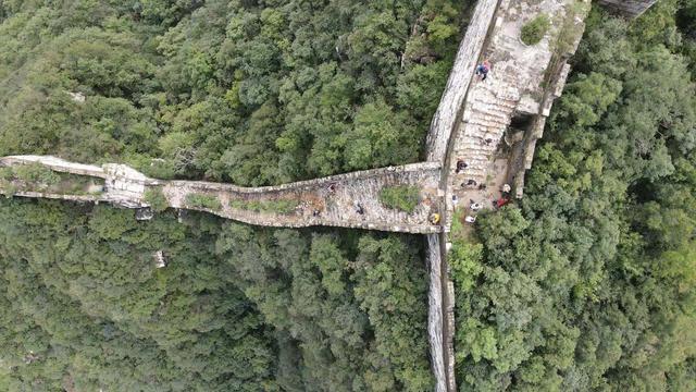 四期项目最大的难点也是亮点,就是154号敌台即“北京结”和155号敌台之间的边墙。这366米基本都是陡峭的台阶,最陡的地方垂直地面接近80度。