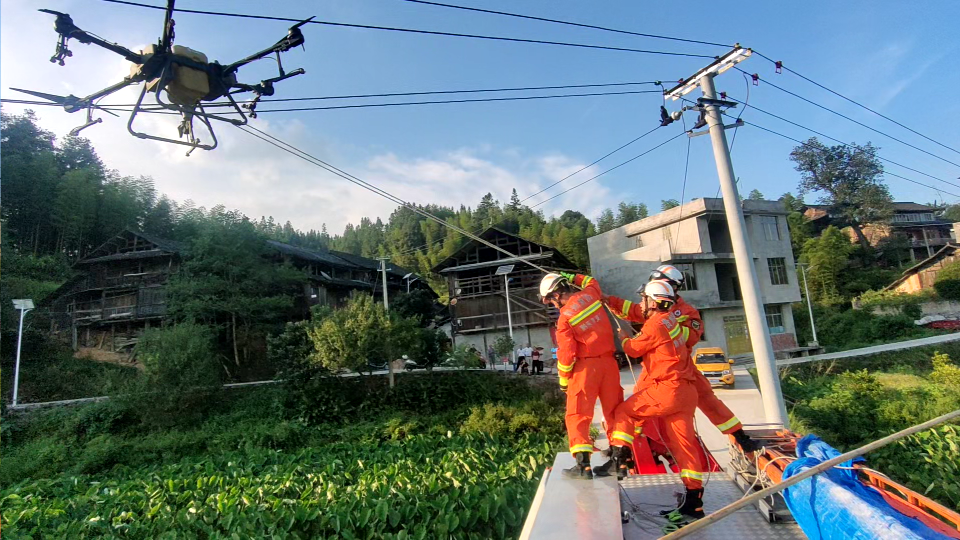 8月18日16时23分,黎平大队接到群众报警称:黎平县中潮镇三合村一架无人机挂到电线杆上,飞控手无法取下,求助消防队,接到报警后,黎平县消防救援大队立即出动1车8名指战员前往现场处置。