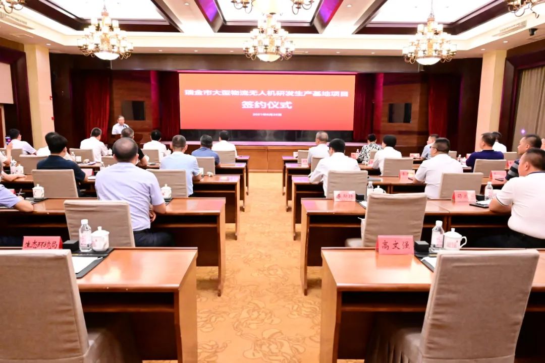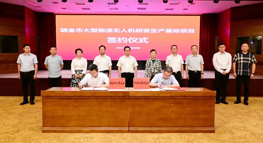 仪式上,罗林生、聂海涛分别代表瑞金市人民政府和四川腾盾科创股份有限公司签订大型物流无人机研发生产基地项目投资合同。