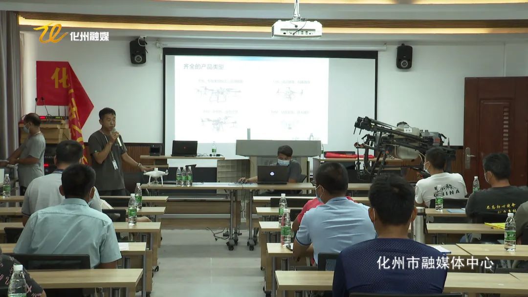 【市农机发展服务中心主任 汲广东:“根据我们目前化州市农业人员、还有种粮大户的要求,和无人机操控这一块是我们目前的短板,所以我们积极地和大疆无人机公司联系,举办了这次为期三天的培训班。这个农用无人机培训在茂名地区首创。”】