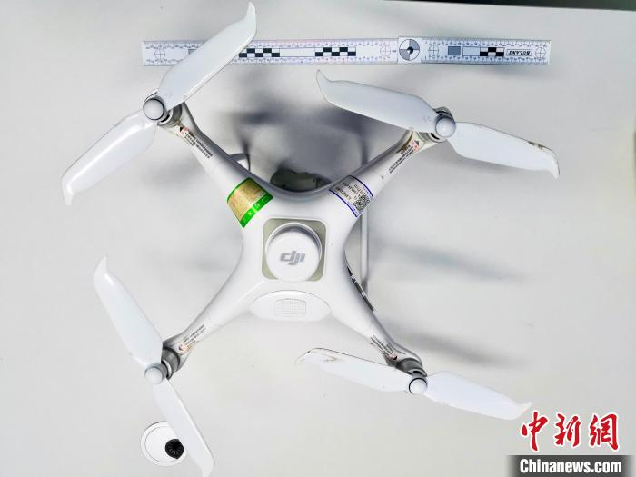 图为深圳铁路警方查处的在铁路线附近放飞的无人机。 深圳铁路警方 供图