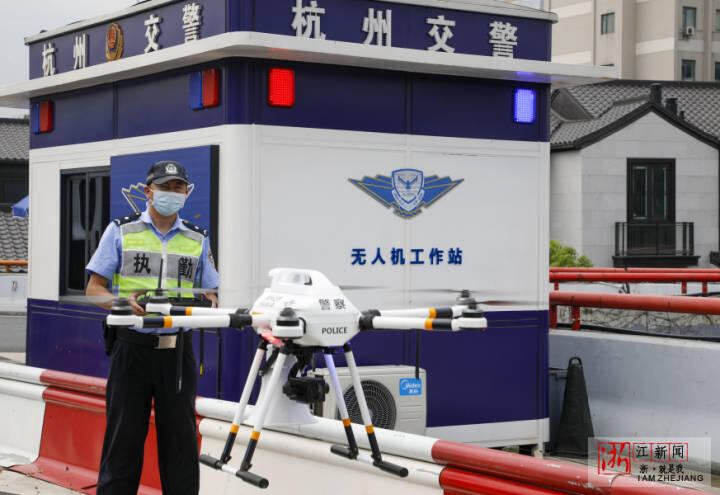 杭州交警快速路大队无人机中队一共配备六台警用无人机,总共19名无人机飞手,中队建立了12个“空中巡区”,主要在绕城高速以及中河高架环北立交、涌金立交、上德立交等路段使用。目前执勤的主要任务是针对交替通行等情况的非现场执法和空中联动现场处罚。