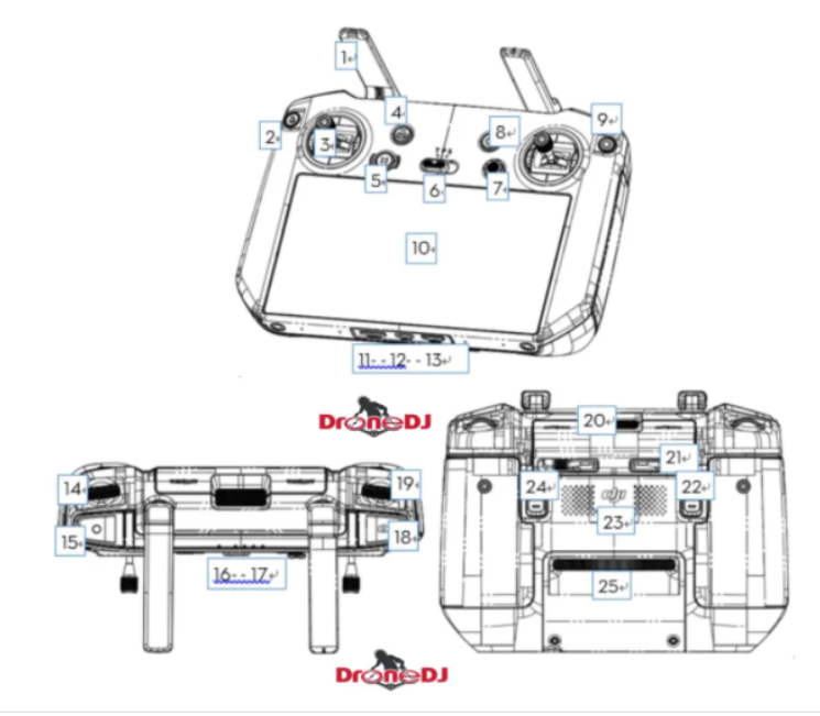 控制器配备了多种无人机和云台控件,以及可自定义的按钮。它的电池续航能力约为 3 小时。
