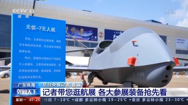 中国空军的静态展示区有一款无人机叫无侦-7,它是我国自行研制的高端大型无人机系统。它是以提供图像情报的方式用于战略侦察和战术侦察,有倾斜侦察和凌空侦察两种基本任务模式,覆盖红外和可见光的频段。