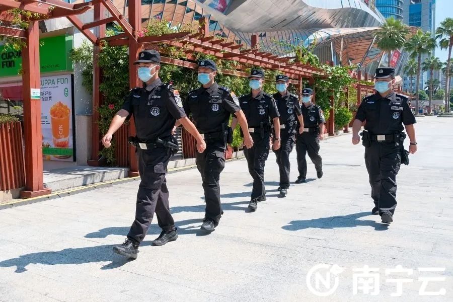 街面巡逻队伍此外,南湖警方还充分发挥科技引领现代警务的突出作用,全面强化各项安保任务的落实。在分局指挥中心,搭建了可视化指挥平台,大型LED高清显示屏滚动播放各地高清视频监控图像,让指挥员对各地人流情况一目了然。在市区主干道,通过沿街商铺的公益 LED屏,滚动播放国庆安全防范宣传片和安全提示信息。同时,在路面增派南湖铁骑队开展路面巡逻,及时处置突发警情,全力做好秩序维护工作。
