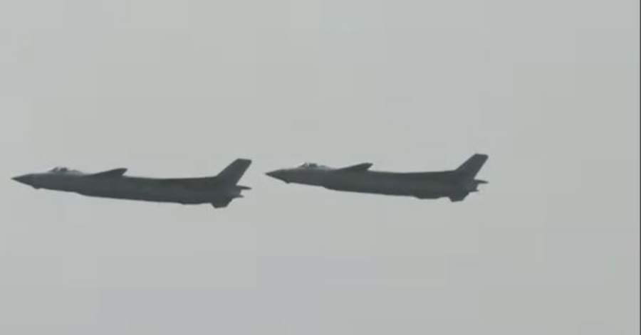 【10:35 】解放军空军歼-20战机登场,小范围进行垂直爬升、水平飞行,呈现隐身战机高机动性性能。