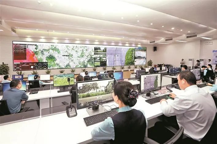 ▲10月21日上午,深高速无人机飞行指挥调度中心的大屏幕现场实时直播无人机飞行巡航10月21日,深圳高速公路股份有限公司举行“无人机+5G”技术应用暨技术研...