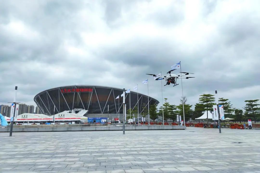 此次为华为开发者大会保驾护航的是蜂巢航宇HC-332油电混合六旋翼无人机。