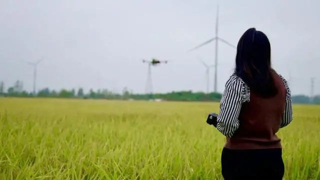 一年以后,无人机八万多的成本已经通过植保作业赚了回来,李新玲又购入第二台无人机。在这个县城里,李新玲和她的无人机服务了35000亩农田。