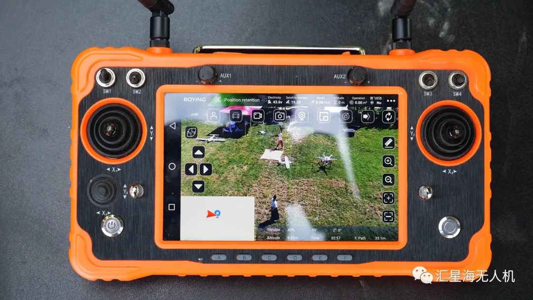 MX16集图、数传,控制于一体,内置安卓系统。具有低延迟、抗干扰性能、传输距离远等特点。最大传输距离可达10km。 该解决方案中的无人机——Hunter-900为四轴机体,机臂可折叠,全机使用碳纤维,采用金属模具一次铺层成型,确保了纤维连续性及加强部位的力学性能,保证了飞行器的结构,从而达到更合适的刚性及强度。 该方案可进行人、车AI跟飞,同时进行多目标识别,并直接视频监控目标区,实时标注目标的地理坐标,方便操作人员后续展开行动。