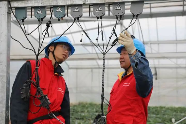 在桐庐县钟山乡陇西村,占地246亩的陇西村蓝莓智创园内布满了各种监测设施和传感器探头,农户可对大棚设施进行调控,实现灌溉通风、调温保暖等自动化作业。国家电网浙江电力(桐庐)红船共产党员服务队接到寒潮预警后,第一时间赶来为全电大棚对园区的线路、大棚内的用电设备开展“拉网式”排查,排除安全隐患。进入立冬,正值草莓秧苗生长的关键时期,寒潮下的草莓秧容易“感冒”,这个阶段如不能保证适应的温度与湿度,将严重影响年底的产量。国网浙江(建德)电力红船党员服务队们主动上门,用细竹竿作拱架,在棚底用塑料薄膜作围裙,拾来作物秸秆堆成防风屏障,挡风防寒。做好防寒措施后,服务队员们对园内大棚的自动化浇灌机以及智能机器人设备线路进行了线路检查消缺,保障草莓园内智慧电气设施稳定运作。下阶段,国网杭州供电公司将持续做好冬季民生用电保障,进一步强化电网设备状态管控和精益运维,及时消除设备隐患,全力保障民生、公用事业和重要客户用电。