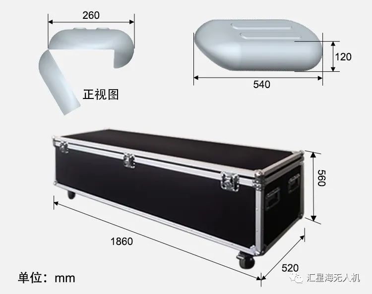 该无人机的抛投仓采用坚固耐用的复合材料,重量轻,防水防尘。最大可装载5kg货物。