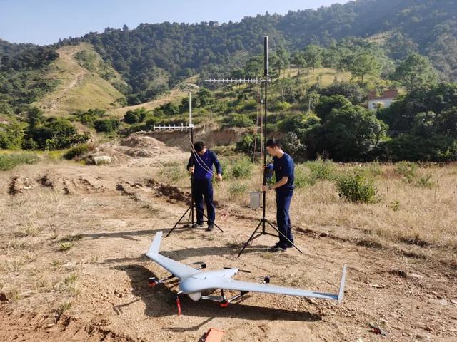 此次勘察任务使用的是远度ZT-3VS复合翼无人机,安装由两名队员完成,副手肖南川迅速支撑起天线,并在地面站上建立航线,在反复筛选后,建立了一条安全的航线,“航线已建立,无人机状态正常”,随着副手的报告,无人机起飞至指定高度,飞手快速将四旋翼切换为固定翼,届时,无人机如同脱缰野马,朝着目标航点驶去,消失在视线范围内,因周边高山环绕,此类无人机无法自动避障,让身为飞手的霍程质精神高度集中,不断向副手问道:“现在高度多少?到第几个目标点了”,在确保飞行安全下,依旧死死盯着云台画面,没有一丝放松,短短十分钟,无人机便完成了近15公里的勘察任务,顺利在最后一个目标点上空盘旋,副手及时切换四旋翼使其平稳降落,完成此次训练,两名队员的心情也放松了下来。