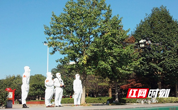 “这是学校首次利用无人机进行防疫消杀,前期做了大量的准备工作,宣传提醒、实地踩点、物资准备、人员安排等,以确保高效有序地完成作业。”湖南工程职院无人机应急救援队指导老师汪珊说。
