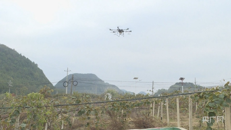 央广网贵州11月22日消息(记者周娴 通讯员郭振东 伍维玉)近日,在贵州省贵阳市修文县洒坪镇青山村的猕猴桃果园上空,记者看到一架无人机正在往返穿梭低空飞行作业。这是修文县农业农村局、当地农机服务农民合作社正在利用无人机进行猕猴桃冬季病虫害防治。