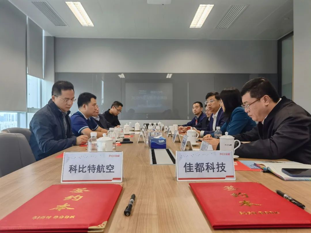 科比特航空董事长卢致辉、执行总裁姚峰、佳都科技高级副总裁刘锋、采购供应链中心总经理吕咏梅、产品业务群副总裁张少文等双方高管共同出席了本次签约仪式。