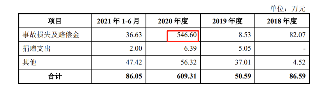 此外,中华网财经查阅招股书发现,营业外支出方面,在事故损失及赔偿金一栏中,2020年支出546万。极飞科技表示主要系当期位于江苏省的一处售后维修网点发生火灾事故,赔偿相关员工的款项 443.01 万元及仓库货物损毁103.59 万元。