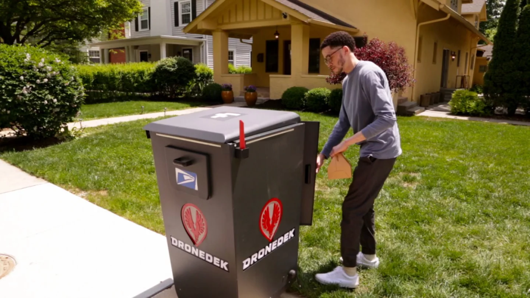 目前,DroneDek由一家位于印第安纳波利斯的同名创业公司开发,其核心是一个大的 “智能 邮箱”,可以安全地固定在地面上,或固定在用户的家里。它将是系统的一部分,在这个系统中,客户将使用一个专门的应用程序,从利用该技术的企业订购产品。