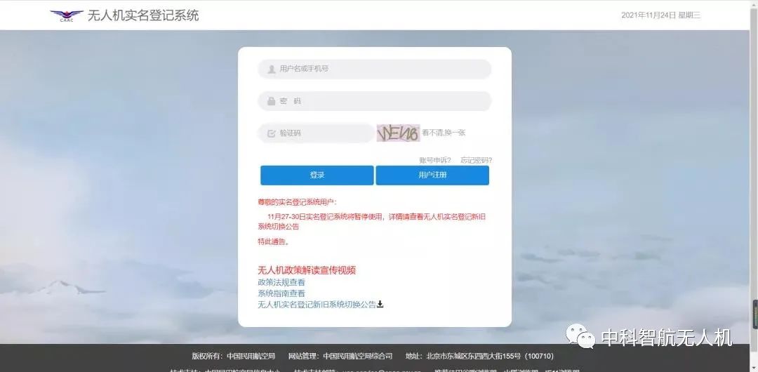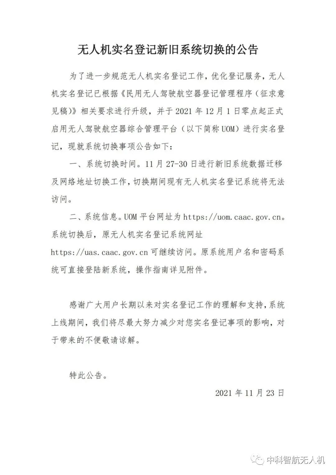 无人机实名登记新旧系统切换的公告