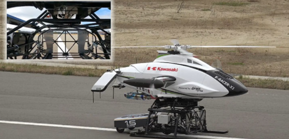此次演示实验中使用的 VTOL 无人机“K-RACER(川崎遥控、自主和货运能力增强型旋翼机)”是使用川崎摩托车“忍者 H2R”的增压发动机新开发的。