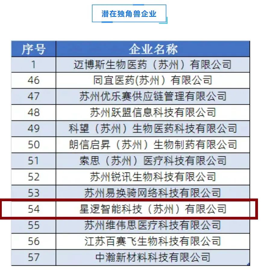 11月25日,江苏省生产力促进中心发布了2021年江苏省高新区独角兽企业和瞪羚企业评估结果,星逻智能成功入选潜在“独角兽”企业名单。