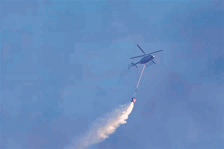 根据现场情况,前线指挥部果断调整战术。增援的无人机反复挂弹升空实施高空精准投弹灭火。2台大型水炮车增援火场,同时给6台森林消防远程高压水车供水,持续灭火。