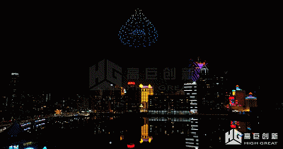 高巨创新此次开幕表演主题为“翱游·澳门光影节”,通过无人机阵型倒计时321,为活动进行开幕倒数,展现莲花、澳门世界遗产建筑等澳门特色元素,唤起大众对这座城市的热爱;