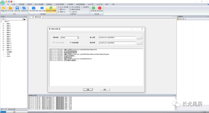 打开软件,选择新建工程(影像内置GPS)→点击左上角添加影像图标,选择所有配准后的_Multi.tif 文件→输入工程名,保存工程。