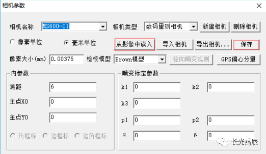 在工程界面显示下,点击 “相机参数设置”→从影像中读入→点击保存,完成内定向。