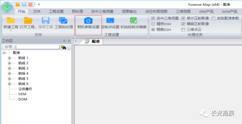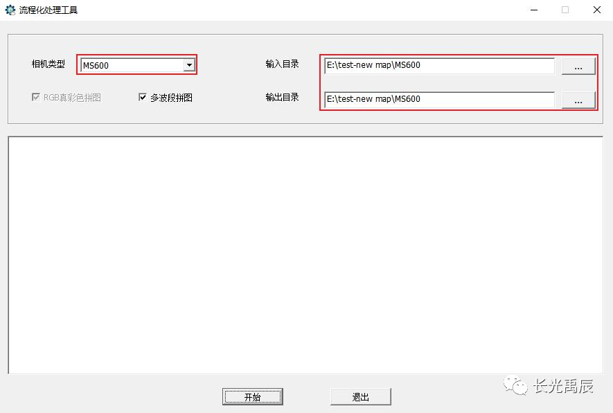 PS:数据配准及拼接步骤也可利用全流程处理工具完成。如下图-,选定相机类型,设置输入输出路径即可开始处理,详见《YusenseMap数据预处理操作手册》(请下载软件安装包解压后查看)。