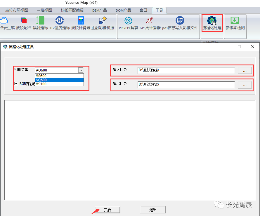 1. 打开 Yusense Map 软件,在“工具”菜单栏中使用“流程化处理” 模块进行一键化处理。