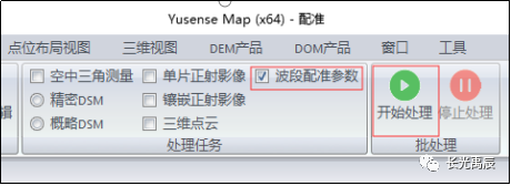 仅勾选开始菜单下的“波段配准参数” →“开始处理”→输入平均相对航高(外场飞行时设置的高度)→确定。