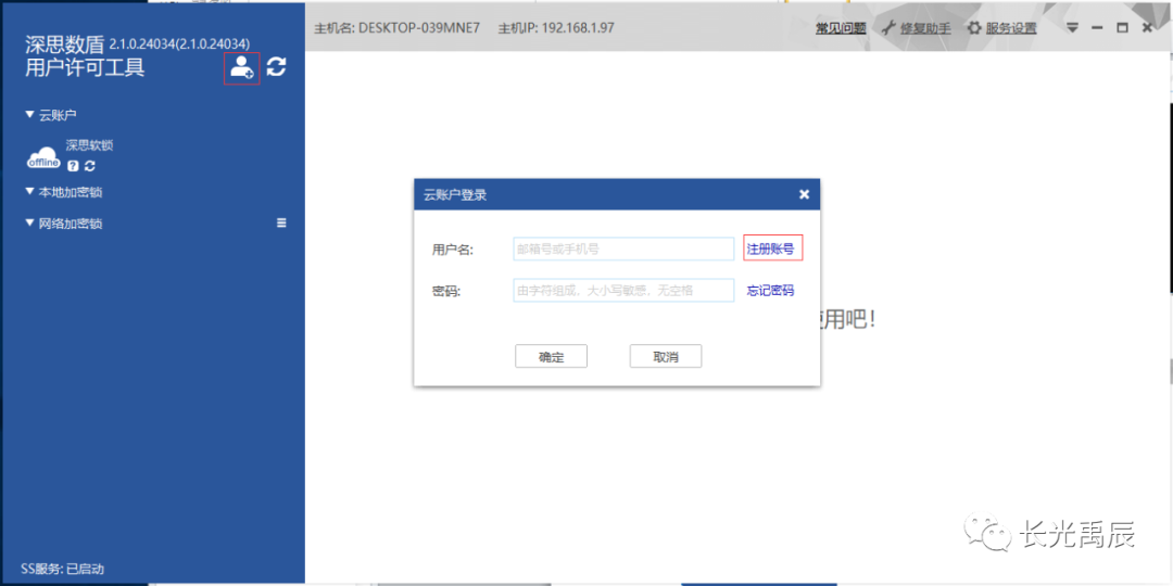 申请云账号试用,点击打开用户许可工具,利用邮箱或手机号进行云账号注册,界面如图1- 5注册界面,联系我司授权后方可登陆使用。
