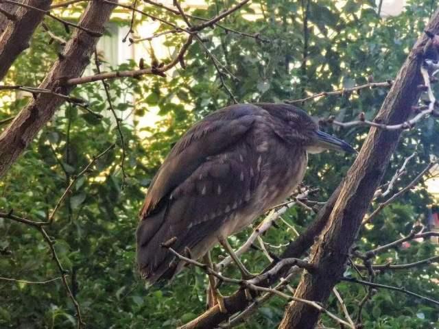 体较粗胖,颈较短,嘴尖细,又像老鹰,如果没看错的话,多半是国家二级保护动物“夜鹭”的一种!乐乐一听,更加激动了,拉着妈妈说一定要把这只夜鹭救回来。可乐乐妈妈也想不好怎么帮助,只能打电话求助报警了。接到报警后,消防指挥中心立即调派蒋村消防站2车8人前往现场。消防员们赶到乐乐家楼下一看,这只夜鹭已经飞到了3楼窗外。