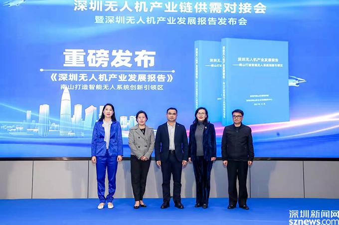 活动上还发布了《深圳无人机产业发展报告》,该报告通过分析南山无人机产业的发展优势和面临的挑战,为深圳和南山研究制定具有无人机产业引领优势的发展战略和实施路径,为南山无人机产业发展实现补链、延链、强链,提供借鉴参考。同时,为未来无人机产业高端发展做好前瞻研究和系统布局,整合集聚来自政府、企业、高校、研究机构的合力,谋划推动南山打造智能无人系统创新引领区。