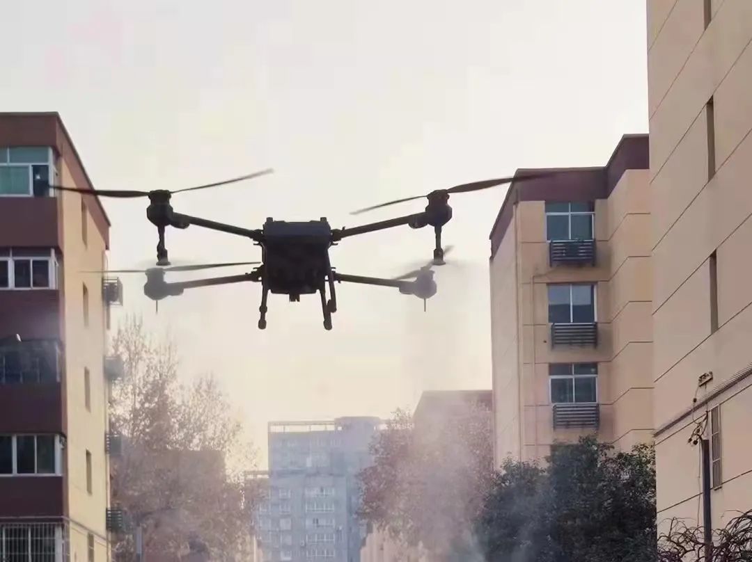 2021年12月22日,面临疫情严峻的时局,西安市实施了全面封闭式管理,位于未央区广运潭大道的天翼航空公司接到了上级部门通知,派多架无人机到疫区协助消杀,减少居民感染风险。