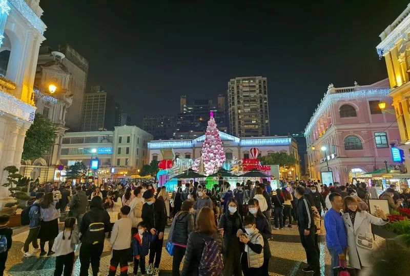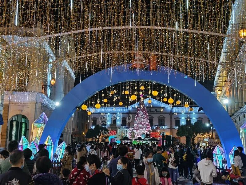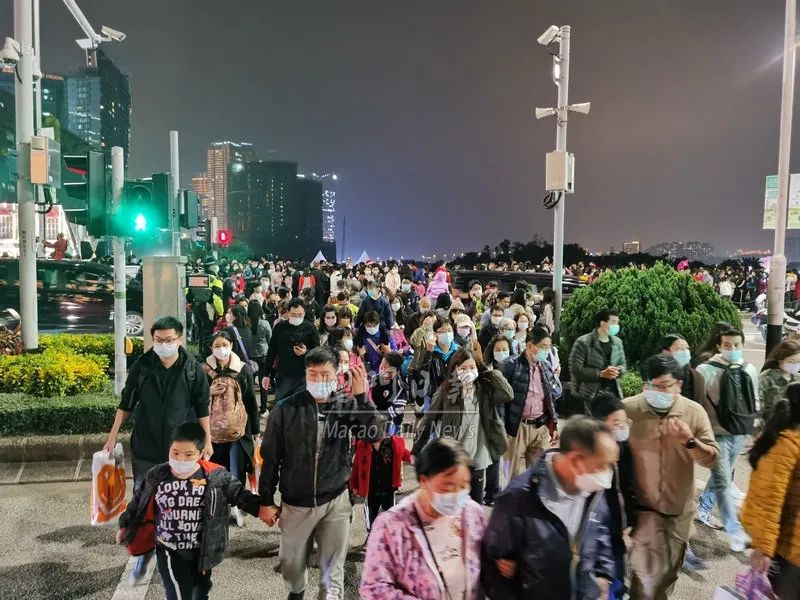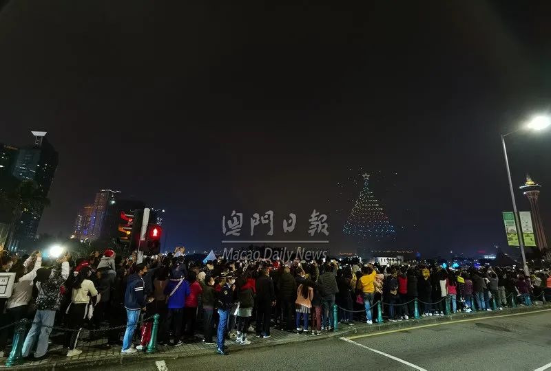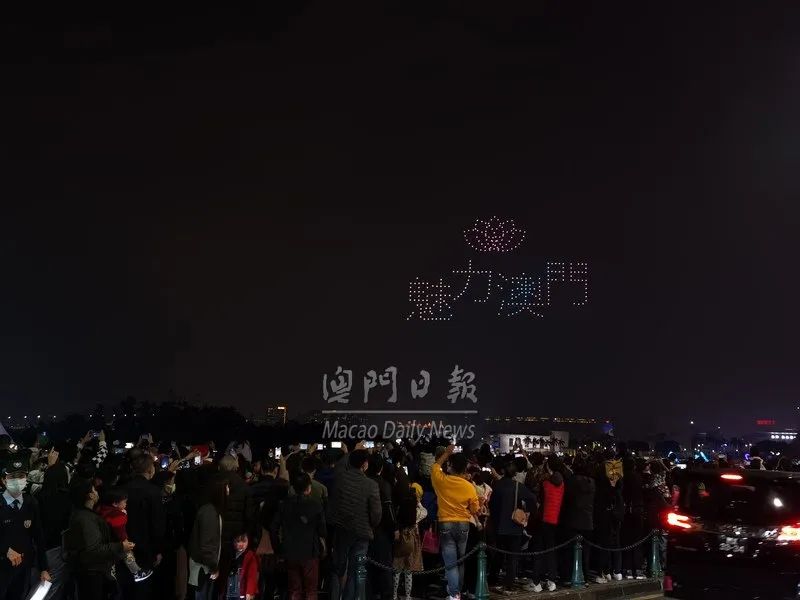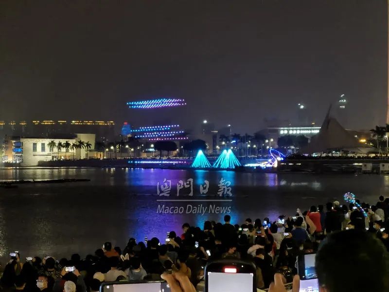 中区灯饰璀璨夺目无人机压轴表演流光溢彩精彩节目浪接浪吸引不少游客来澳欢度佳节