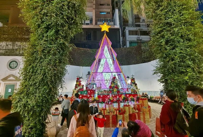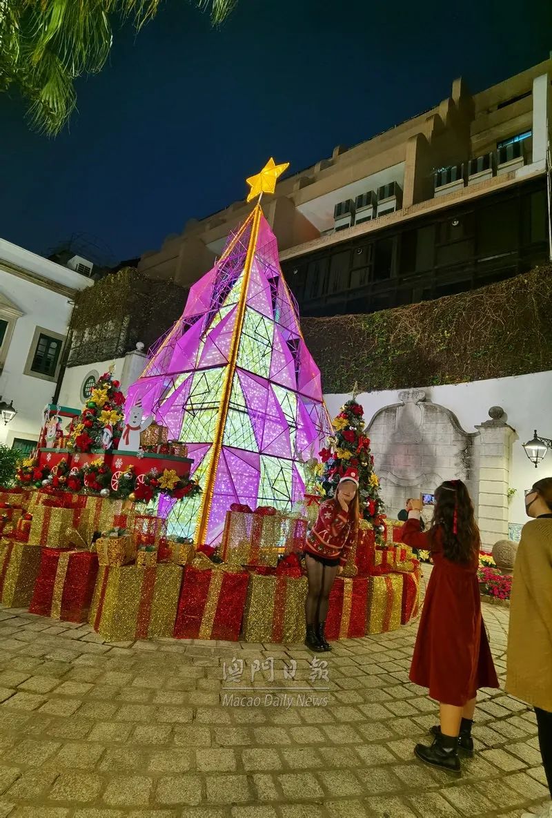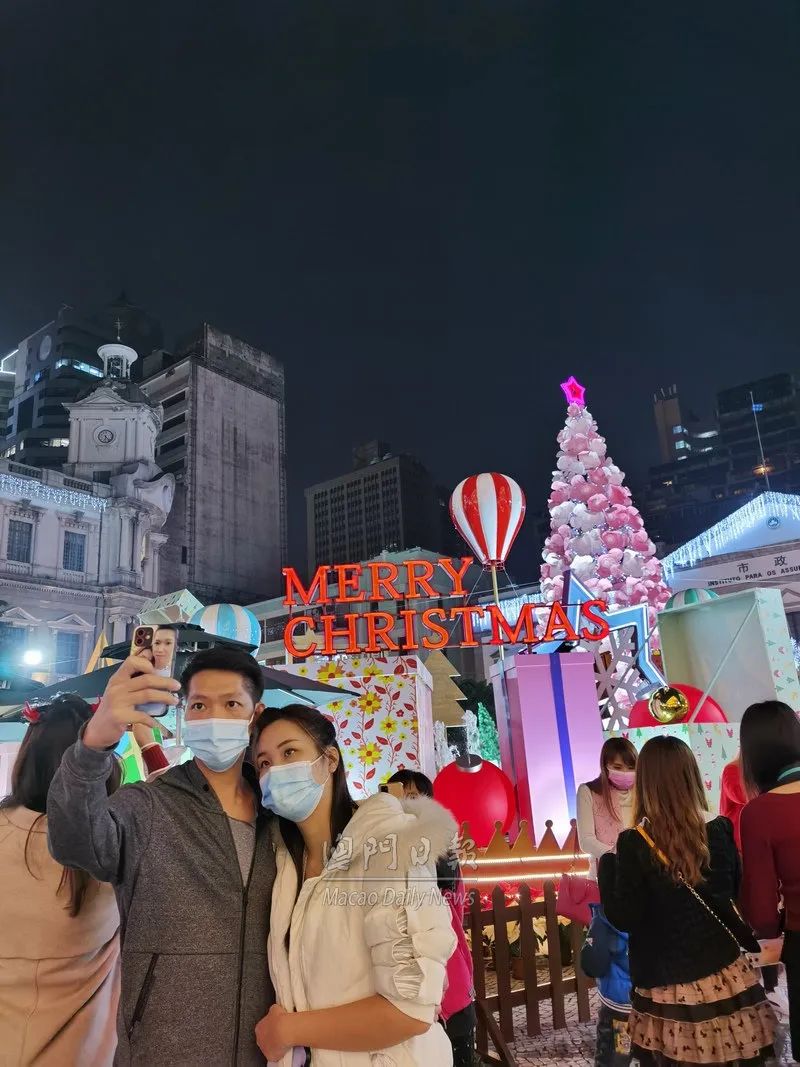 市政署大楼设置圣诞树圣诞佳节,昨夜不少居民及游客到各区度节,中区灯饰璀璨夺目,南湾上空的无人机压轴演出,精彩节目浪接浪,人流络绎不绝,不少人驻足留影。