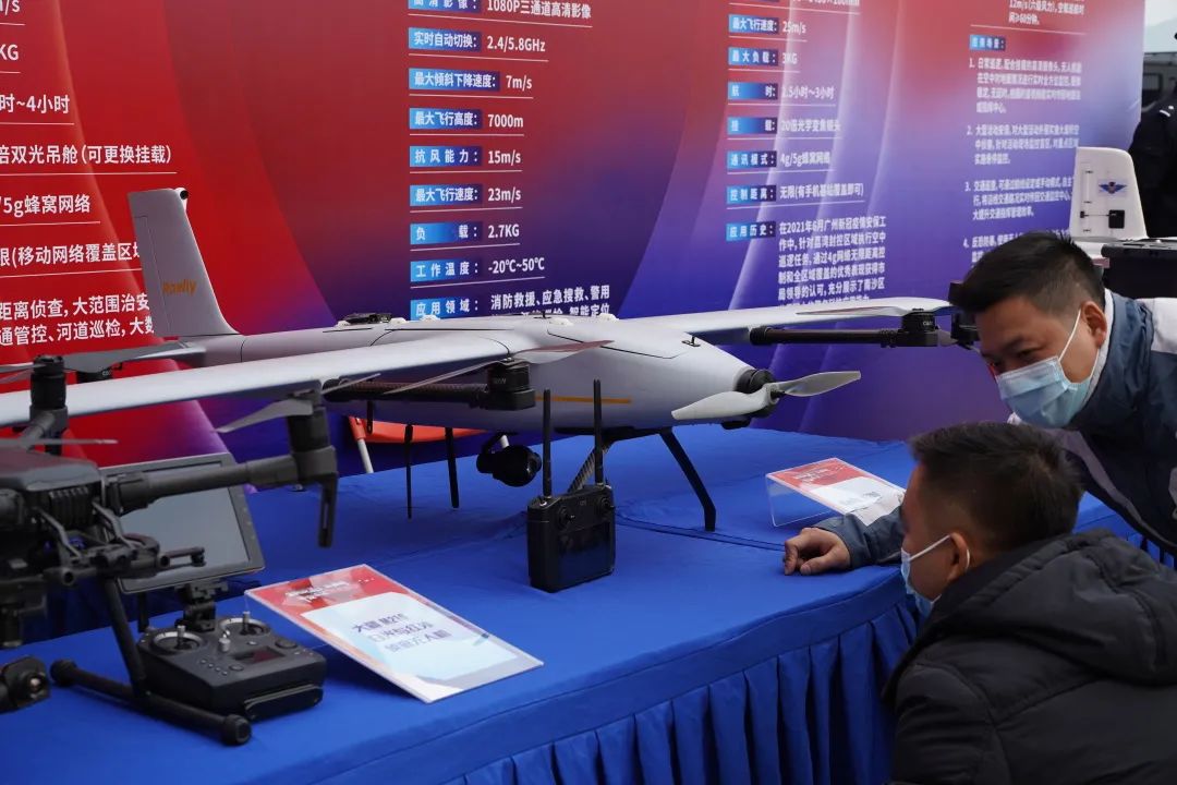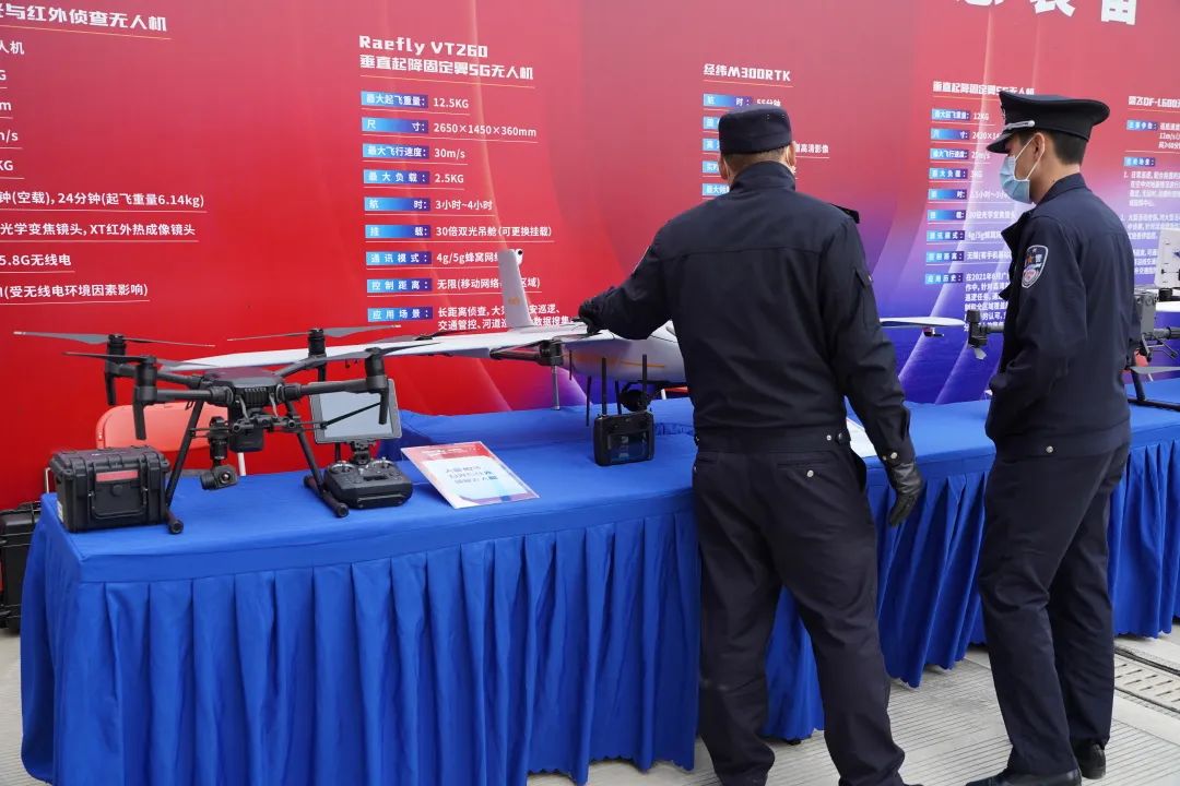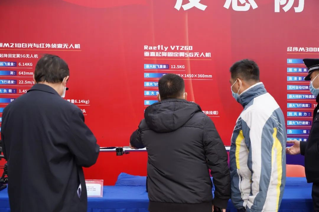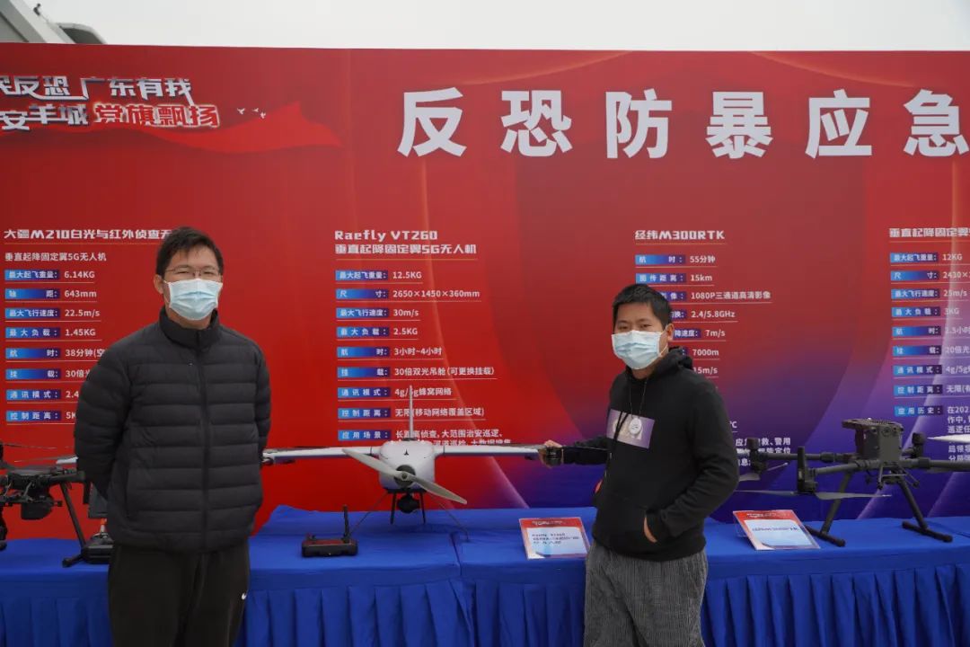 现场布有多款新型先进的反恐武器和应急装备展示,摆放整齐的反恐防暴应急装备吸引众人驻足参观。雷迅创新旗下无人机团队——雷迅飞行作为装备供应商,携Raefly VT260(点击蓝字查看详情)和Raefly(点击蓝字查看详情)两款垂直固定翼参与广东省反恐演练活动。