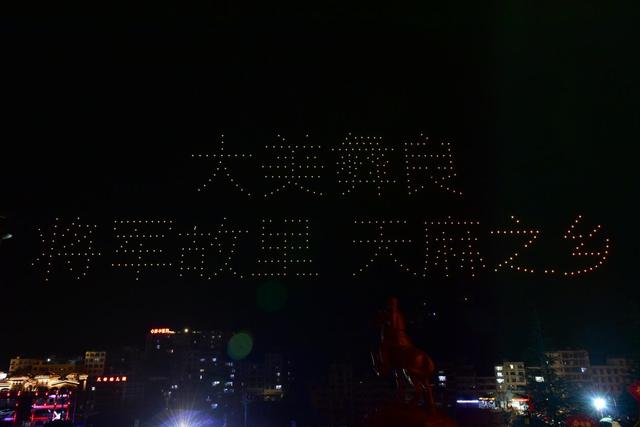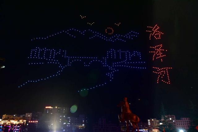2021年12月31日晚,“旭航·水墨彝良”千架无人机秀在昭通市彝良县罗炳辉将军纪念馆广场举行。“水墨彝良”“携手彝良共创文明城”“大美彝良 将军故里 天麻之乡”“洛泽河”及其图案……千架无人机以起落交错的队形、变幻炫丽的灯光,在彝良县城夜空舞出了道道流光溢彩的文字或图案,给跨年夜喜迎新年的彝良市民带来了一份视觉和科技盛宴。
