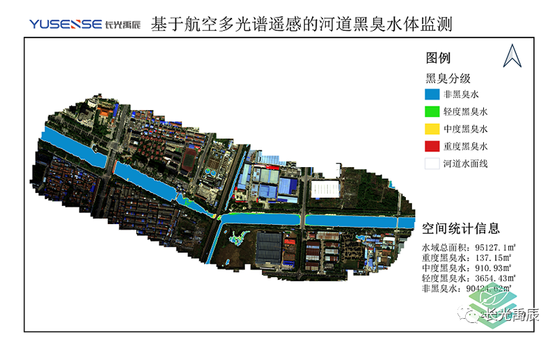 本次项目采用DJI M300 RTK无人机搭载MS600 Pro多光谱相机进行外业数据采集,一方面可灵活应对曲折较多河道的带状航线设计需求,降低数据冗余量,提高外业效率;另一方面依托多光谱遥感的技术特点,自动提取水域范围,分析河道污染情况,避免复杂的内业流程。