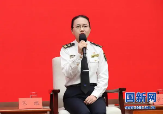 6月23日,中宣部举行中外记者见面会,上海浦东海事局副局长陈维作为交通运输领域优秀党员代表之一,分享了她在一线的工作经历。