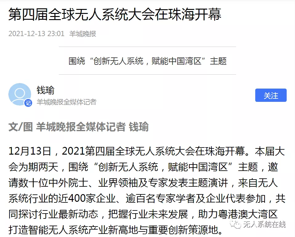 12月13日,珠海科协有约 | 2021第四届全球无人系统大会在珠海开幕。