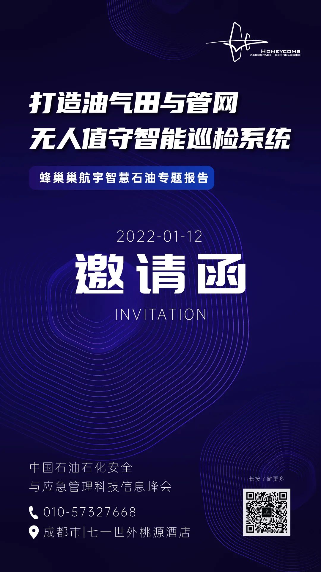 蜂巢航宇应邀参加并就“打造油气田与管网无人值守智能巡检系统”进行专题报告。诚挚邀您共同参与!