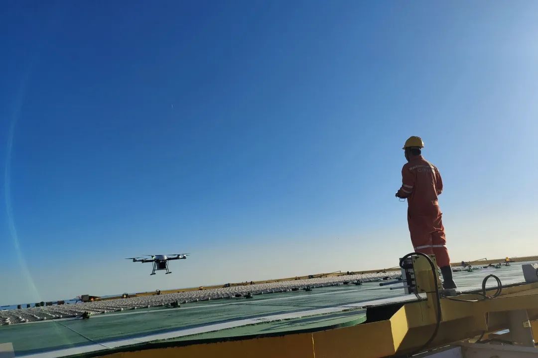 蜂巢HC-342无人机已多次于渤海油田作业,完成了线路巡检、物资投递、远程喊话、夜间搜索等多项飞行任务。