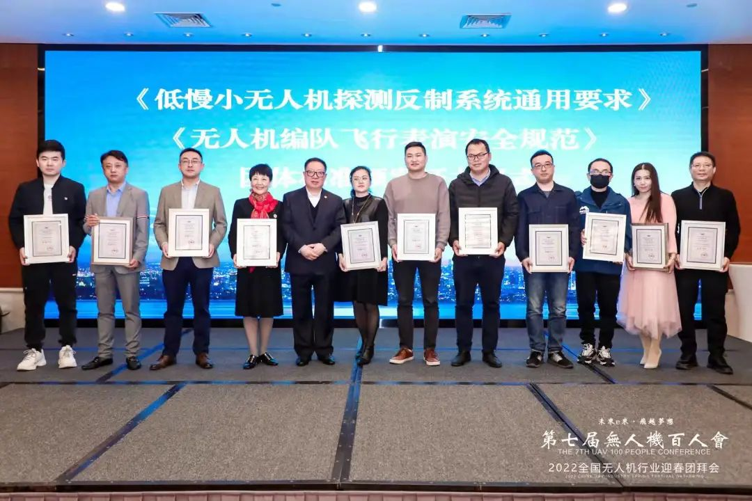会议接近尾声,在行业人士的见证下,为《低慢小无人机探测反制系统通用要求》和《无人机编队飞行表演安全规范》两项无人机团体标准颁发证书。《低慢小无人机探测反制系统通用要求》和《无人机编队飞行表演安全规范》是由深圳市无人机行业协会团体标准立项归口并在深圳发布,是国内首个涉及低慢小无人机探测反制系统及无人机编队表演安全规范的通用标准。